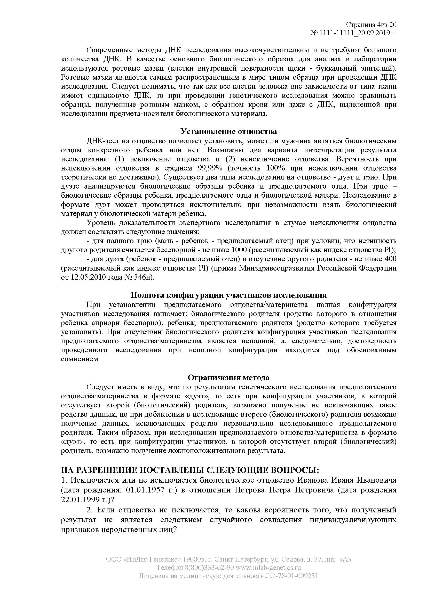 Мы проводим судебно-генетическую экспертизу на отцовство в строгом соответствии с законодательством РФ и соблюдением всех процессуальных нормативов. В результате экспертизы будет подготовлено исчерпывающее экспертное заключение. Это многостраничный прошитый документ, содержащий всю необходимую для суда информацию, который заверяется печатью лаборатории и подписью эксперта-генетика.